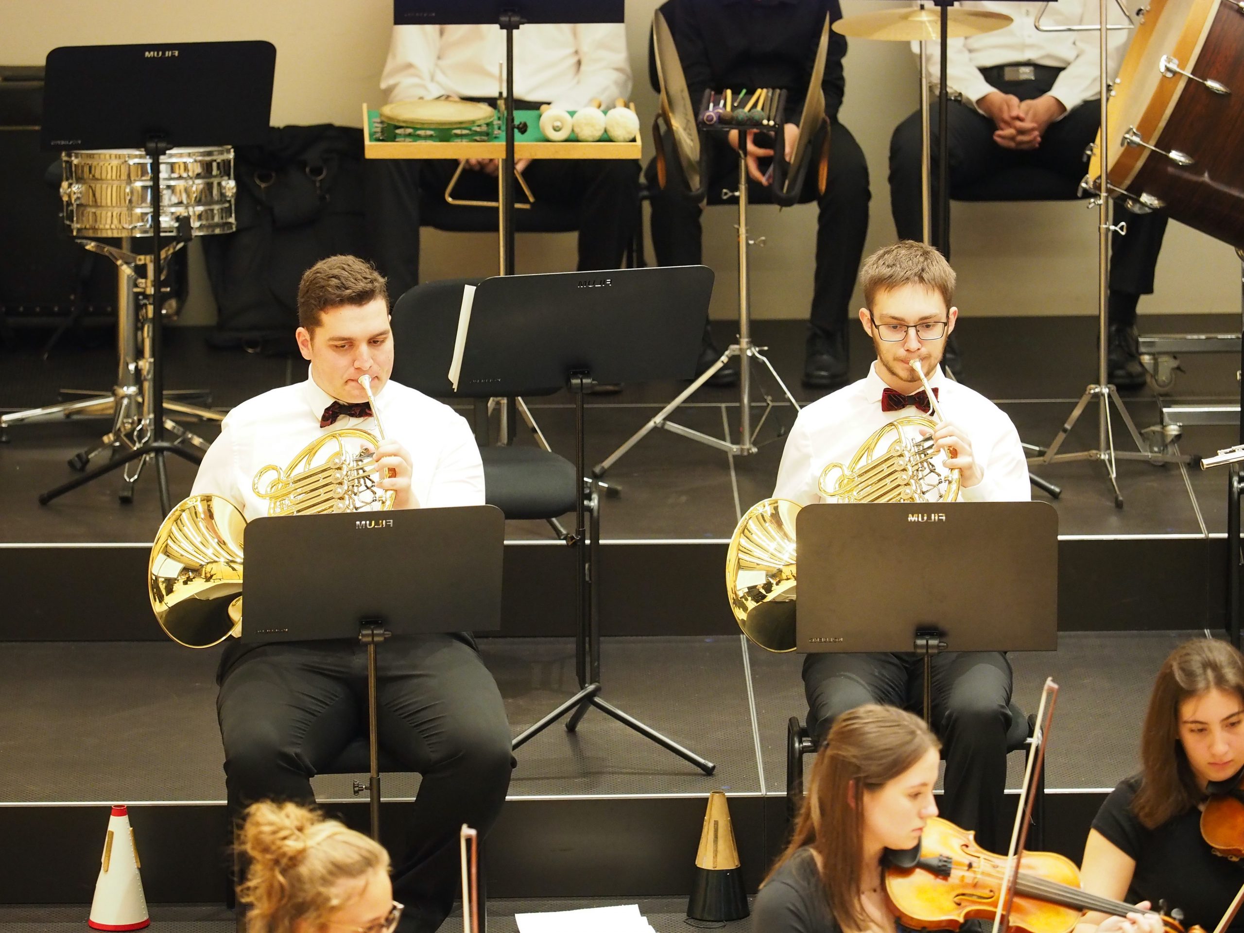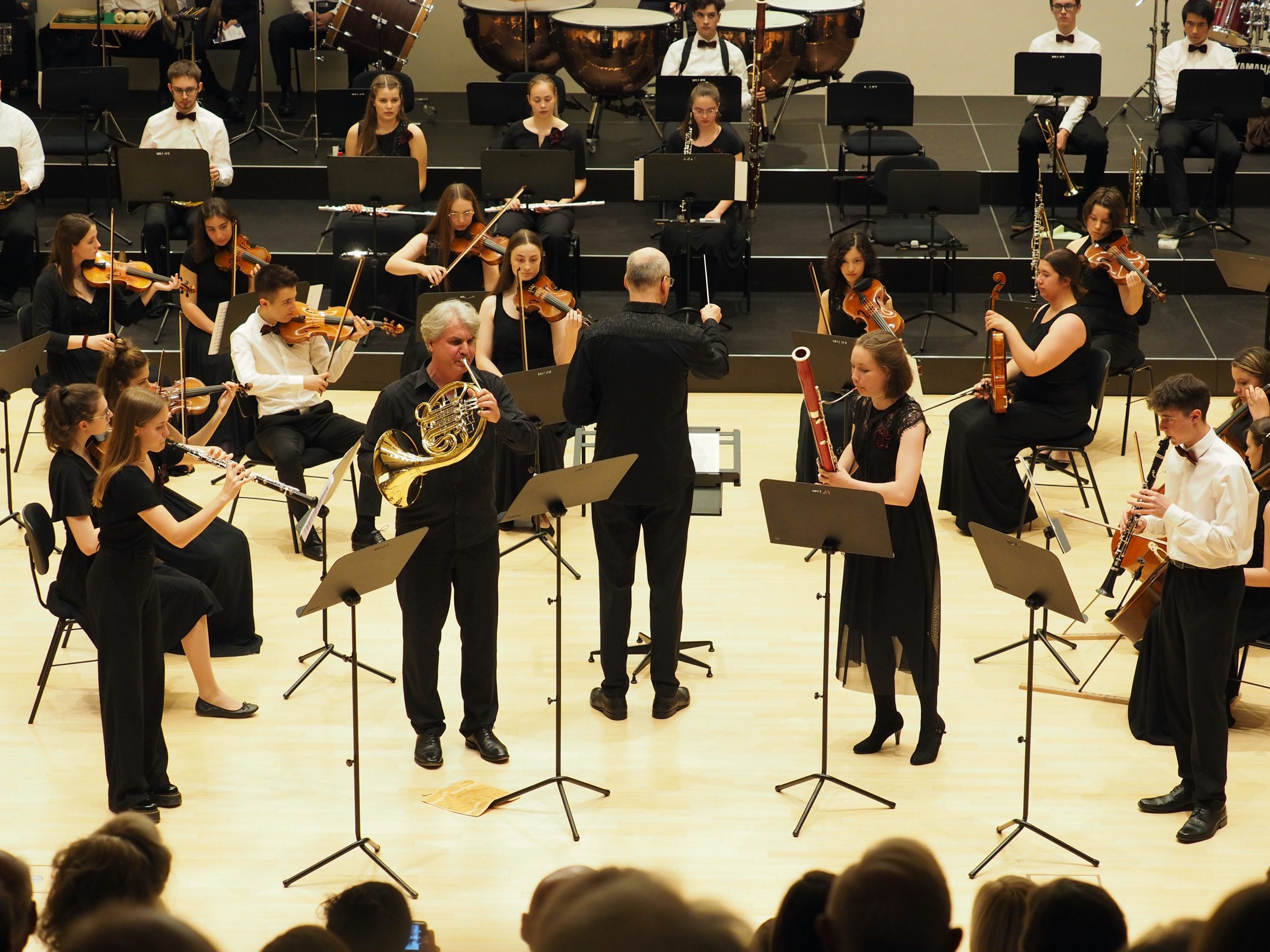 Hervorragende Solist*innen mit ihren Instrumenten Marimbaphon, Oboe, Klarinette, Fagott sowie Horn schafften neben einem anspruchsvollen und abwechslungsreichen Programm eine wunderbare Konzertatmosphäre, die vom Publikum mit viel Applaus belohnt wurde.