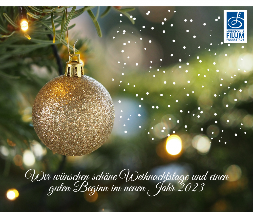 Während der Ferienzeit vom 19. Dezember 2022 bis einschließlich 6. Januar 2023 sind die Musikschule und das Café FILUM geschlossen. Ab Montag, 9. Januar 2023 sind wir wieder für Sie da. Wir wünschen frohe Weihnachtstage und einen guten Start ins neue Jahr 2023.