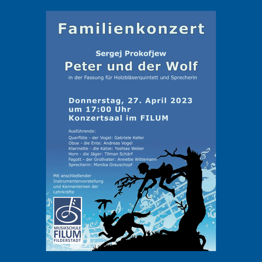 Familienkonzert „Peter und der Wolf“ am Donnerstag, 27. April 2023 um 17:00 Uhr im FILUM Konzertsaal