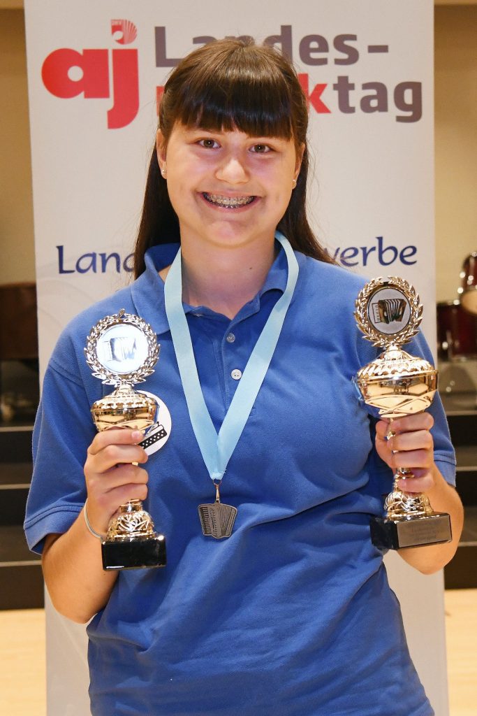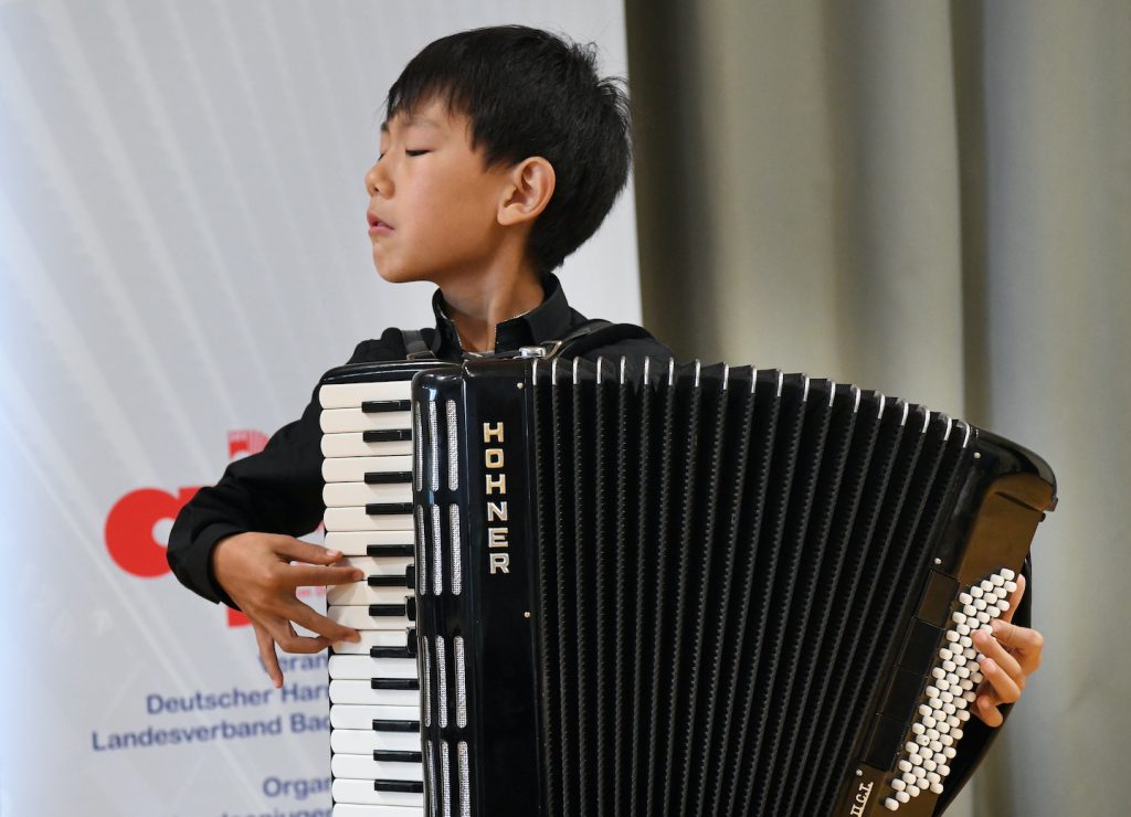 Außer den Konzerten und dem Begleitprogramm gab es aber noch etwas, worauf sich ganz besonders die jüngeren Akkordeonspieler*innen gefreut haben: Der Wettbewerb. Hier haben zwei Schüler*innen der Musikschule Filderstadt bemerkenswerte Erfolge verbucht. Tim Yang erspielte sich in der Altersgruppe 2 sowohl bei Standardbass als auch bei der konzertanten Disziplin jeweils den 1. Preis. Nicole Alber holte sich dann mit 49 Punkten von 50 möglichen in der Altersgruppe 6 ab 17 Jahren (konzertant) neben dem 1. Preis auch den Titel der Landesmeisterin.