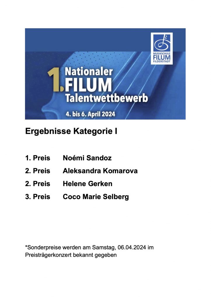 Ergebnisse FILUM Talentwettbewerb Kategorie I