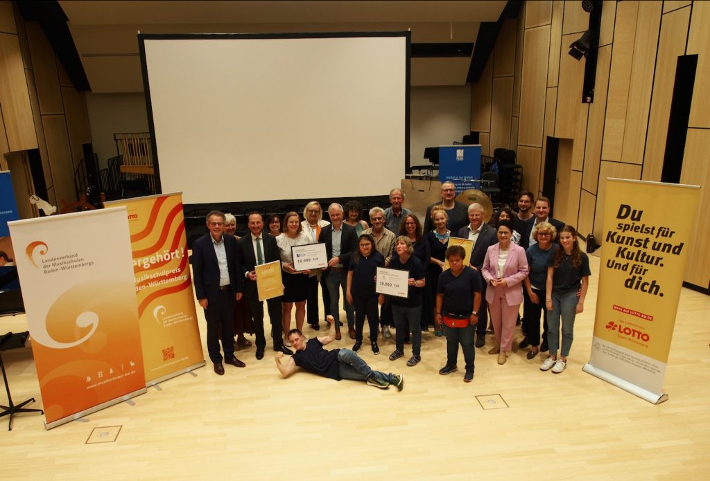 Wir erlebten eine Höhepunkt des Schuljahres, als wir am Mittwoch, 10. Juli in einer feierlichen Stunde den Publikumspreis des renommierten Musikschulpreises Baden-Württemberg überreicht bekamen. Dieser Preis ist eine besondere Anerkennung für unser Engagement im Kooperationsbereich. Der Gewinn des Publikumspreises ist für uns nicht nur eine Erfolgsstory, sondern auch Ansporn, weiterhin mit vollem Engagement im Kooperationsbereich zu arbeiten (siehe Bericht).