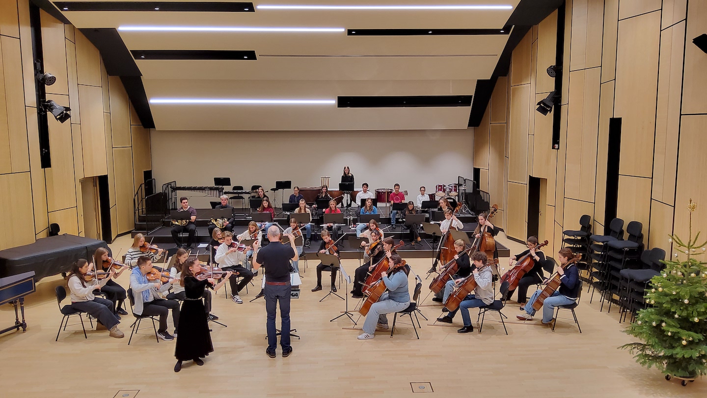 Unter der Leitung von Musikdirektor Robert Wieland präsentierten die jungen Musikerinnen und Musiker des FILUM ein Konzert, das die hohe Qualität der Orchesterarbeit an unserer Musikschule in beeindruckender Weise widerspiegelte – ein wahres Fest für die Ohren und eine willkommene Einstimmung auf die bevorstehenden Feiertage.