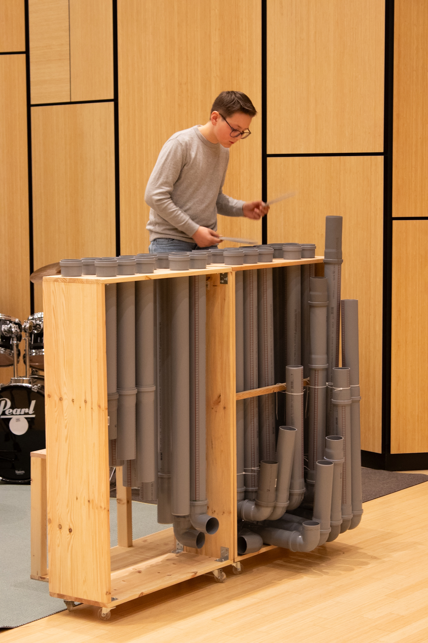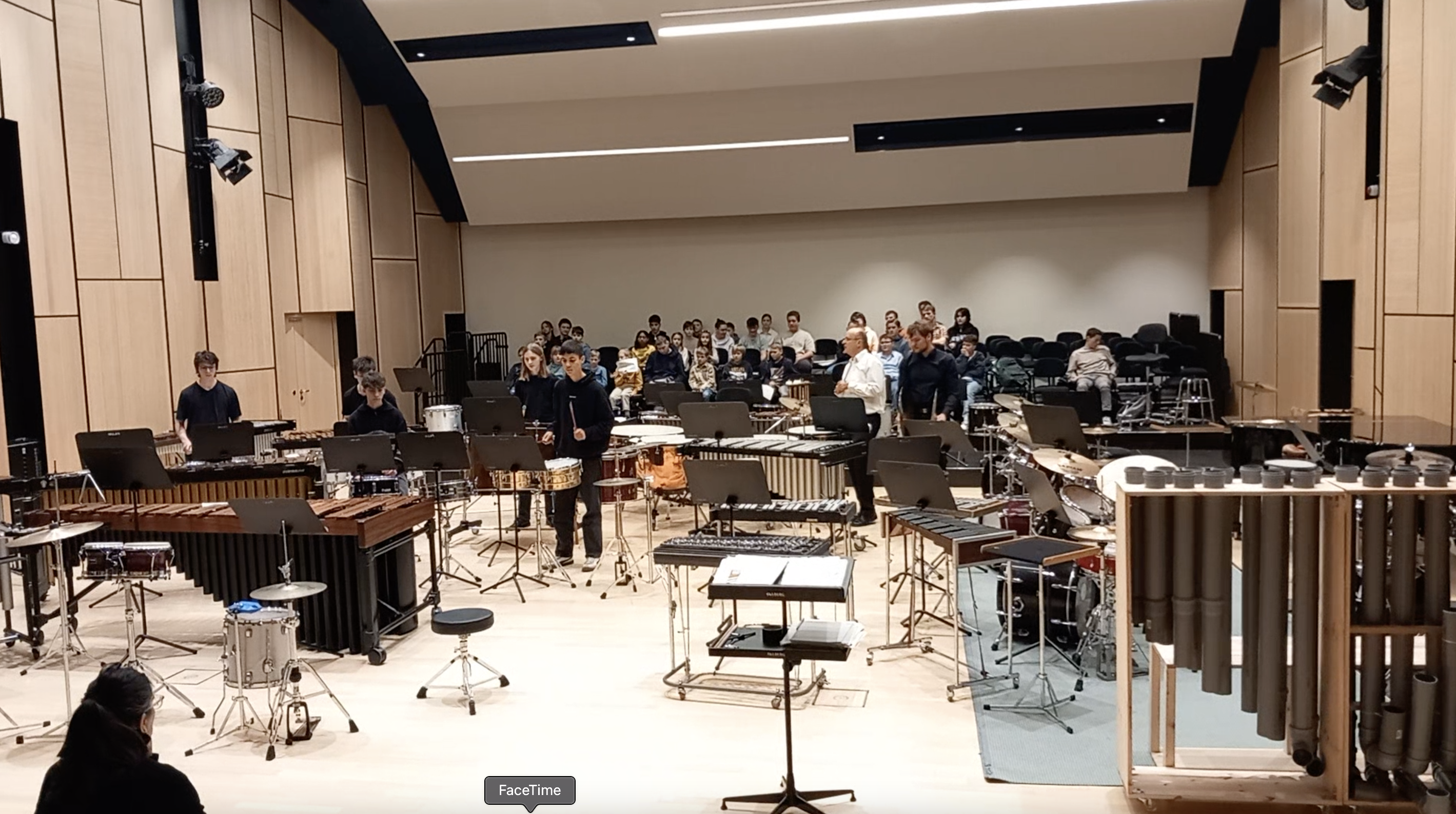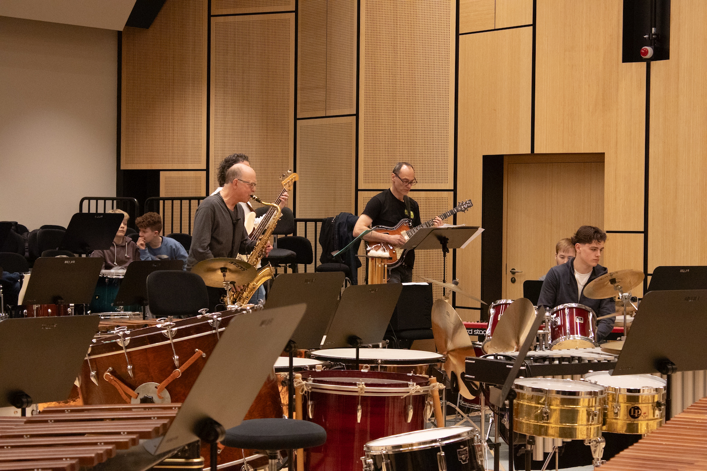 Doch das war erst der Anfang: Am Samstag und Sonntag folgten die beiden Jahreskonzerte des Fachbereichs Percussion im FILUM Konzertsaal. Hier wurde die gesamte Bandbreite des Schlagwerks präsentiert – von Drums über Marimba bis hin zum kompletten Schlagzeug in all seinen Facetten. Sogar ein selbstgebautes Instrument sorgte für Begeisterung. Am zweiten Tag gab es dann noch eine besondere Überraschung: Eine Vorgruppe begeisterte das Publikum im vollen Konzertsaal, bevor das eigentliche Konzert begann.