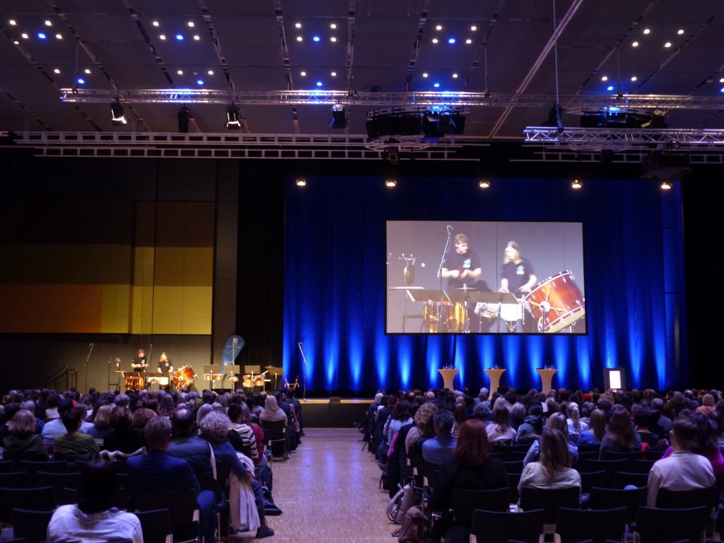 Den Auftakt machte der beeindruckende Auftritt am Freitag auf der didacta – die Bildungsmesse – vor mindestens 1.500 Zuschauer*innen! Ein gigantischer Moment, als das Percussion-Ensemble der Musikschule die Bühne betrat und mit mitreißenden Rhythmen die Besucher*innen der Messehalle zum staunen brachte.