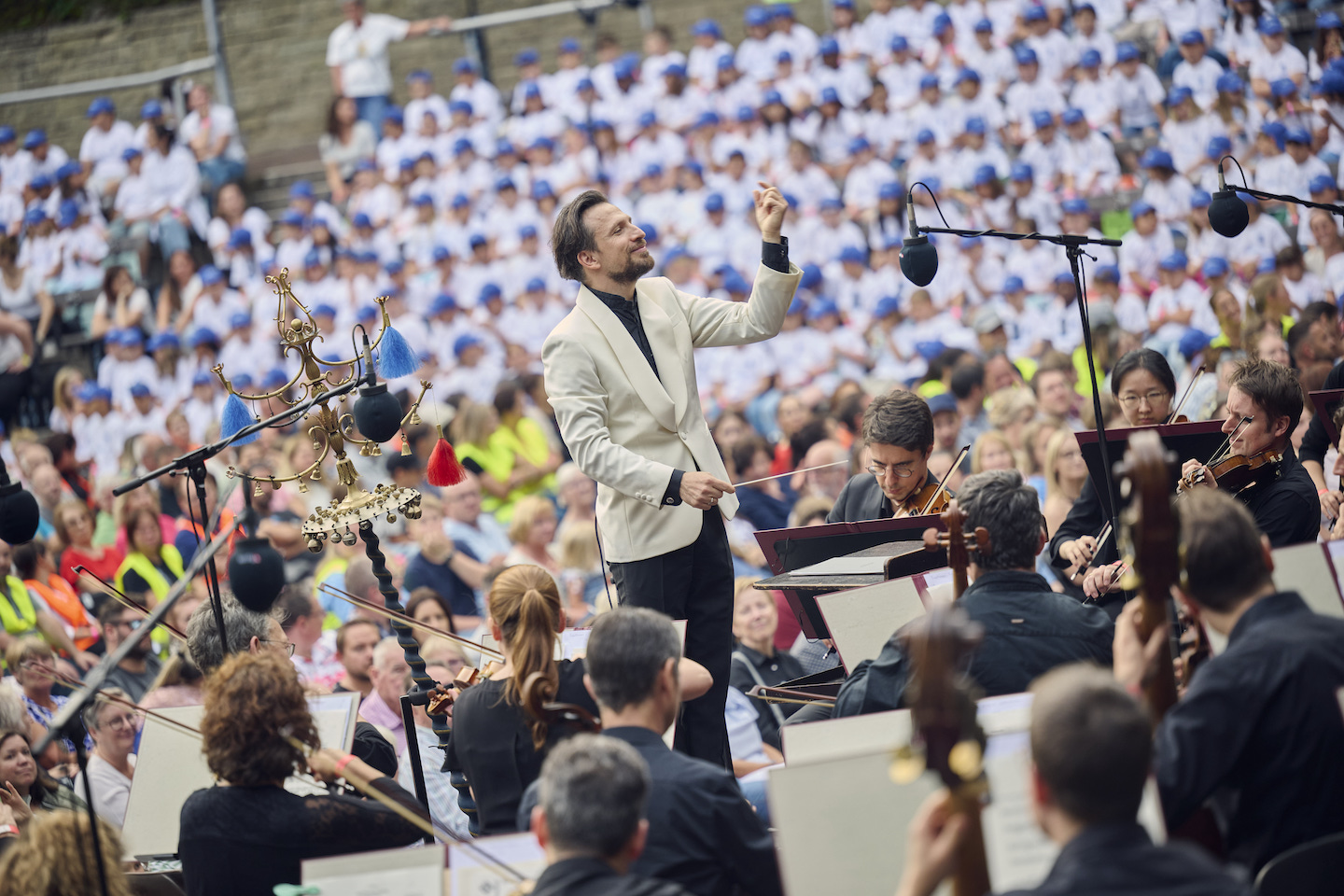 Über 750 Grundschulkinder aus Filderstadt standen am Mittwoch, 23. Juli, gemeinsam mit dem renommierten Staatsorchester Stuttgart auf der Bühne der Freilichtbühne Killesberg – ein unvergessliches Erlebnis im Rahmen des Sparda Klassik Open Air 2025!