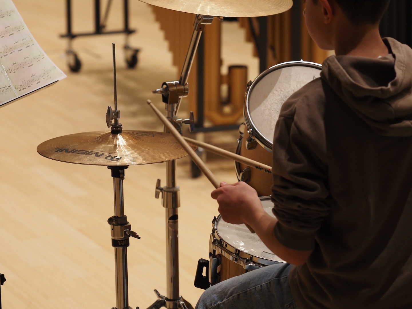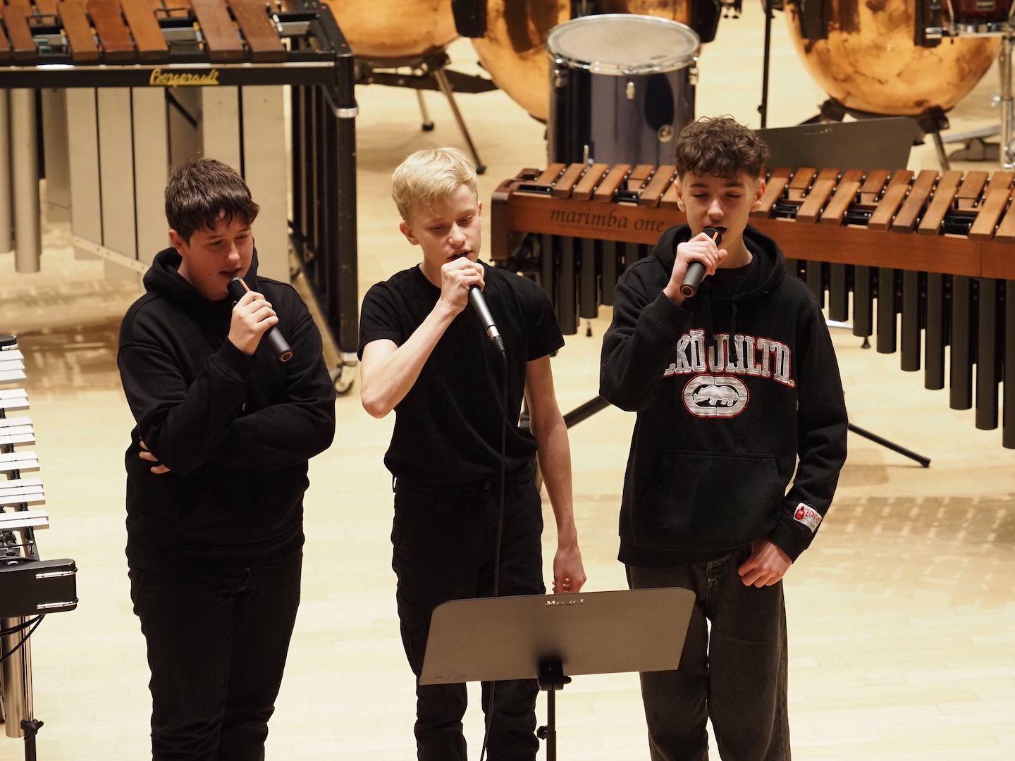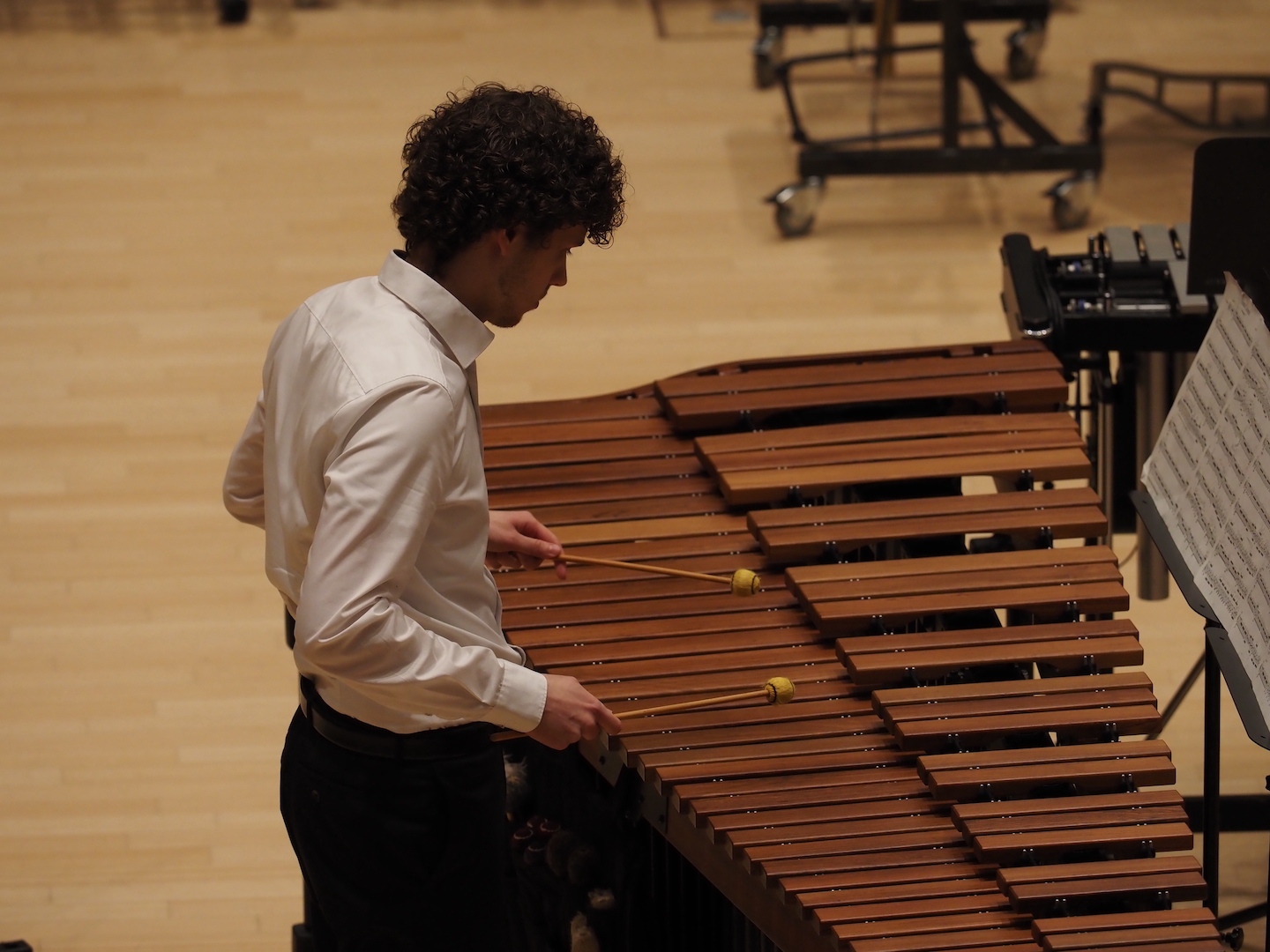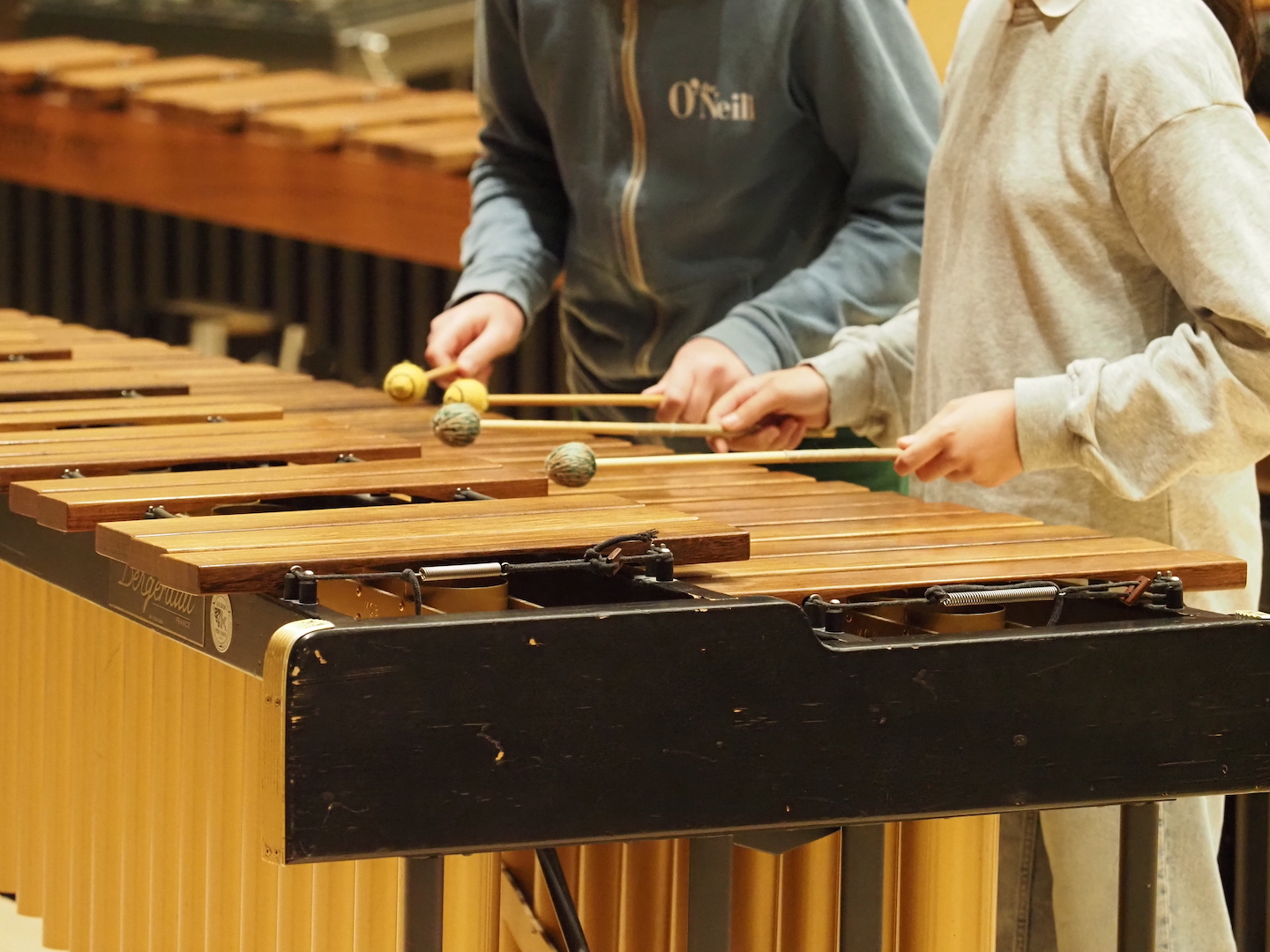 Schon beim Betreten des Saales bot sich ein beeindruckendes Bild. Marimbas, Vibraphone, Pauken, Trommeln, Becken, Drumsets und zahlreiche weitere Schlaginstrumente füllten die Bühne – ein faszinierendes Panorama der Percussion-Welt. Wenn alle diese Instrumente gemeinsam erklingen, entsteht eine Klangvielfalt, die den ganzen Raum erfüllt und das Publikum unmittelbar mitreißt.